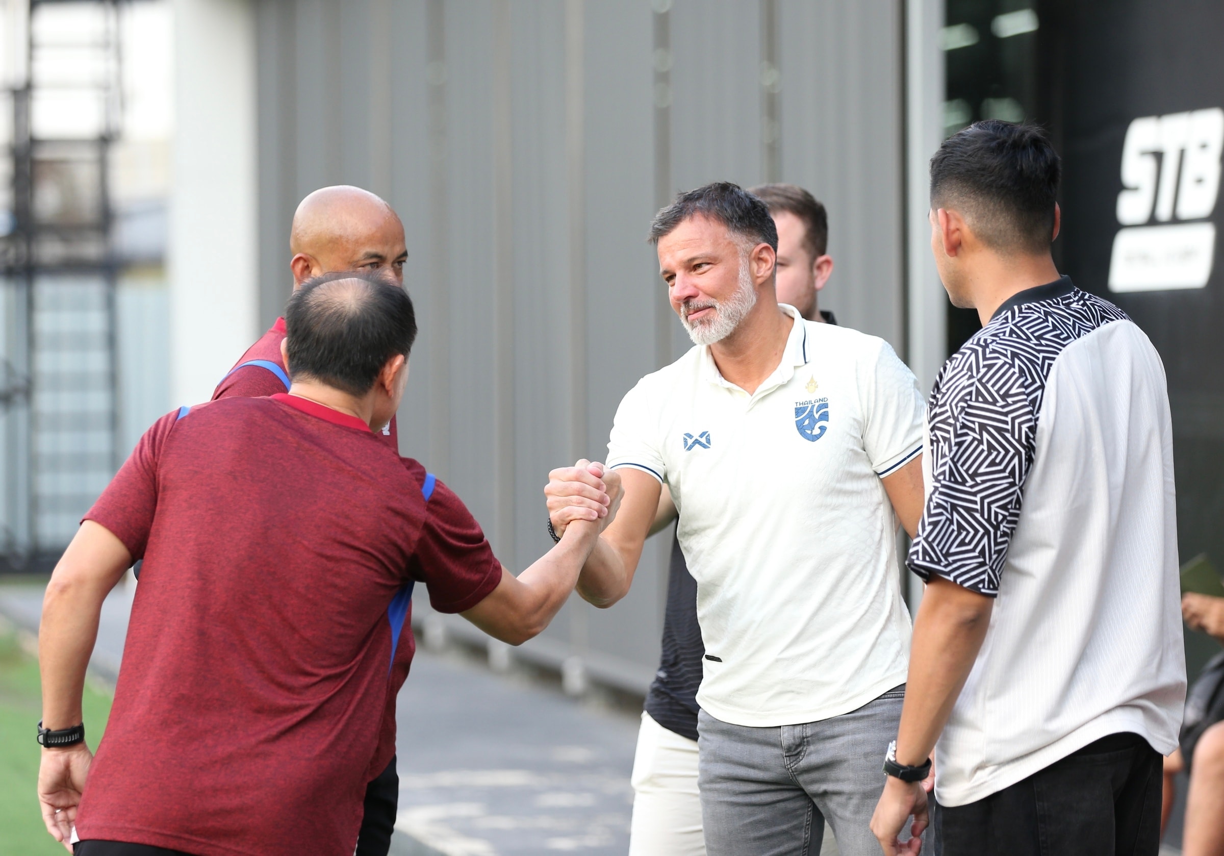 HLV Anthony Hudson đến theo dõi buổi tập của Thái Lan chiều nay 17/12, trước thềm chung kết bóng đá nam SEA Games 33.