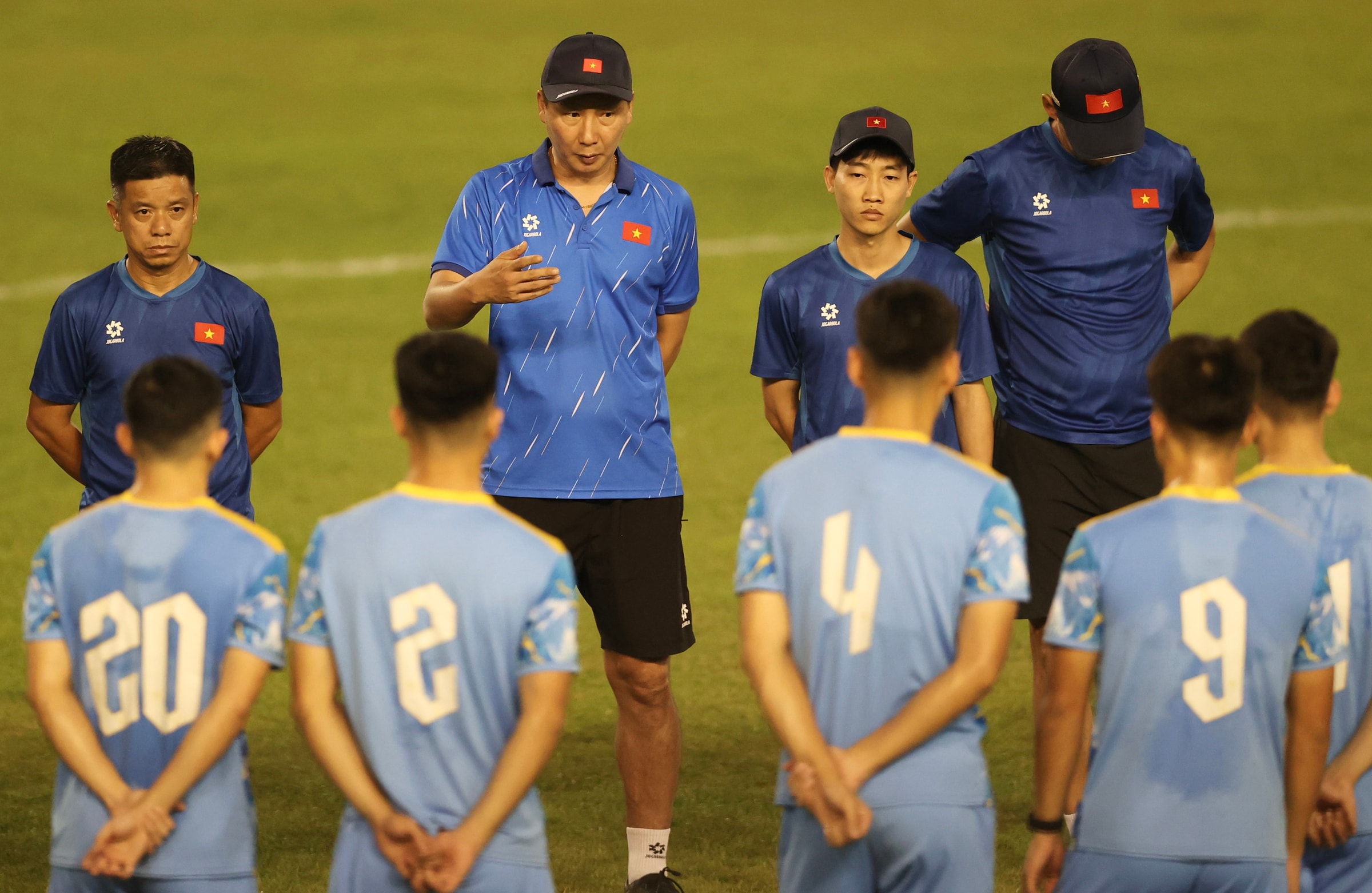 Vài tiếng sau khi đến Thái Lan, thầy trò Kim Sang-sik đã có buổi tập đầu tiên, chiều 1/12.