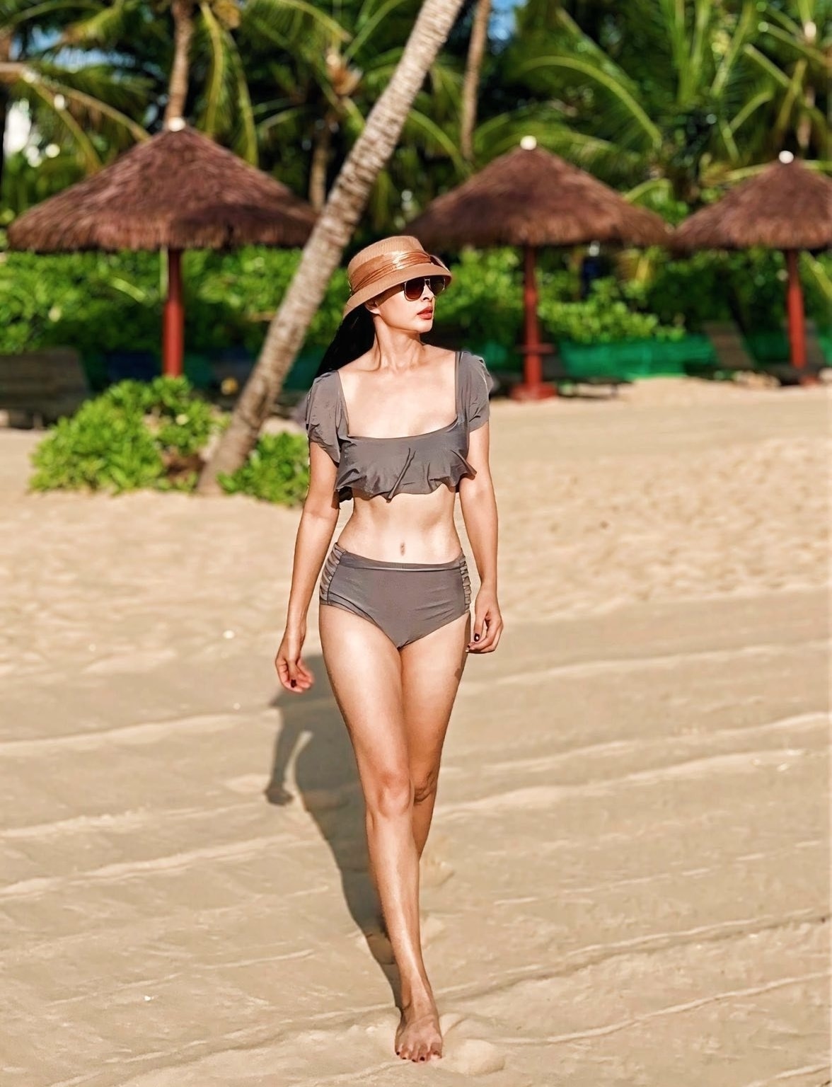 Người mẫu Thúy Hạnh toát lên vẻ tươi trẻ nhờ chọn những bộ đồ ngắn, cắt cúp phóng khoáng ở tuổi 47.