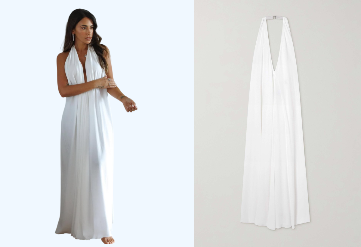 Công thức xẻ ngực, đơn sắc và trang sức đính kim cương được Antonella Roccuzzo áp dụng với thiết kế của thương hiệu Jacquemus.