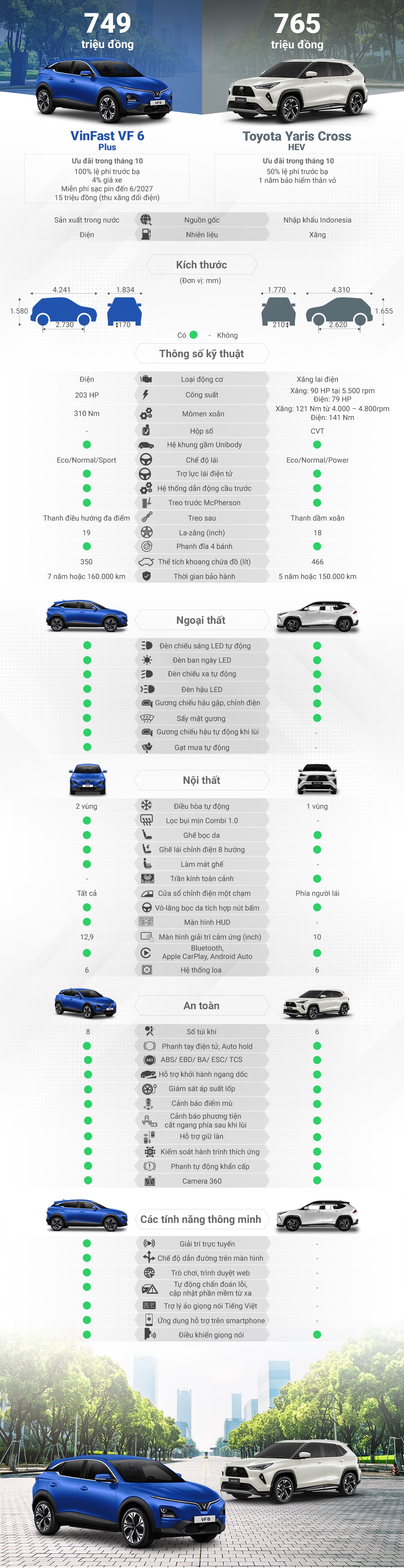 VinFast VF 6 - Toyota Yaris Cross so trang bị crossover cỡ B