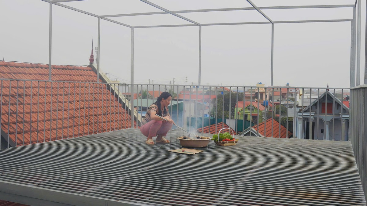 Chị Thùy cho biết nuôi gà sân thượng khác hoàn toàn cách nuôi truyền thống. Chuồng gà được thiết kế thông thoáng, mát về mùa hè và kín gió vào mùa đông. Nền chuồng làm hai lớp để dễ thu gom phân, luôn giữ khô ráo. Họ sử dụng men vi sinh để phân hủy chất thải, quét dọn hằng ngày và rắc men định kỳ để khử mùi.