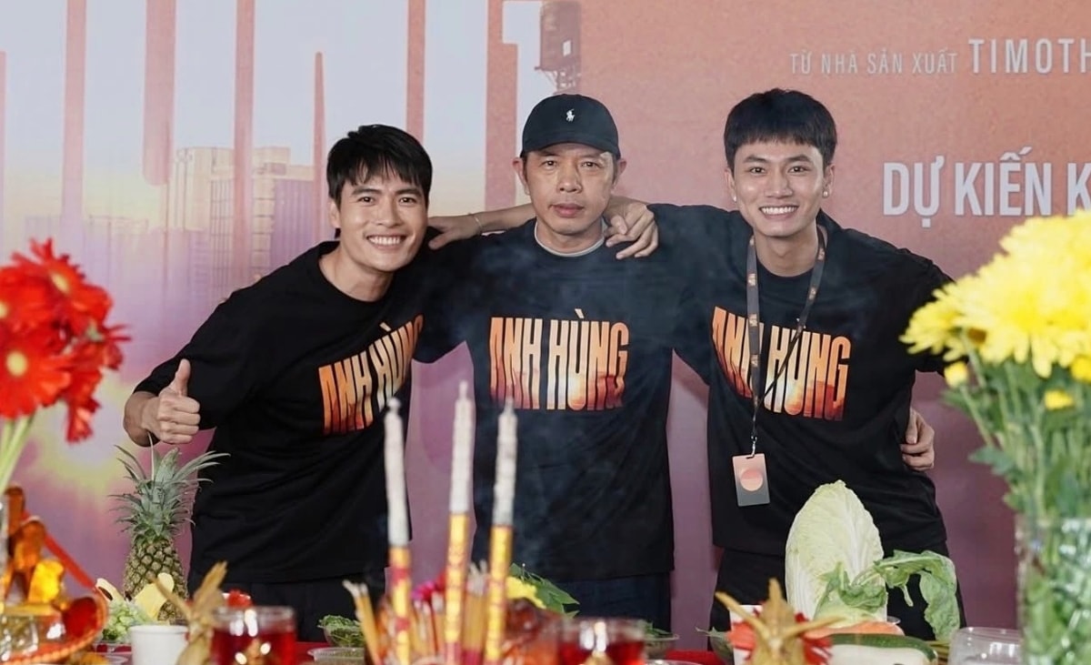 Từ trái qua: Võ Tấn Phát, Thái Hòa, Đoàn Thế Vinh trong buổi cúng khai mạc phim điện ảnh Anh Hùng (đạo diễn Võ Thạch Thảo) đầu tháng 11. Diễn viên cho biết không đặt nặng chuyện đóng chính hay phụ, chỉ muốn thử thách bản thân với các vai có chiều sâu, mang đến màu sắc mới mẻ cho người xem.