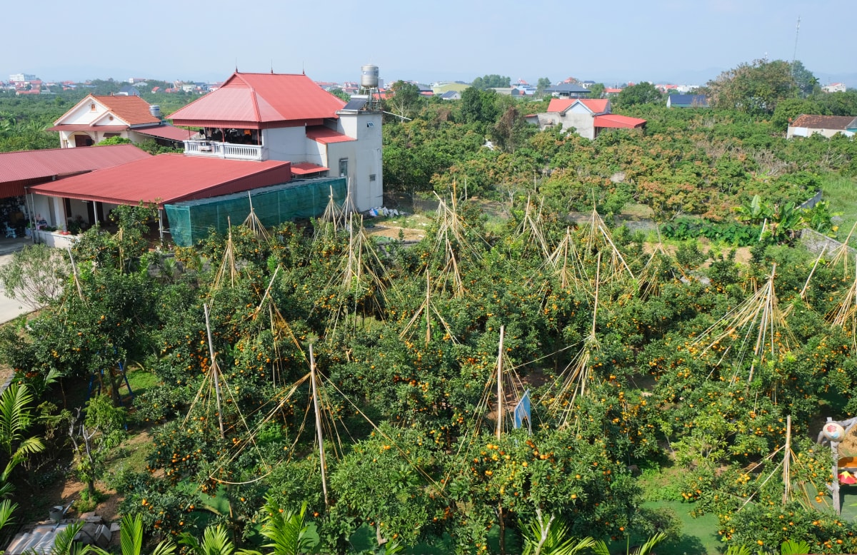 Những ngày cuối năm, khu vườn rộng 1.000 m2 tại tổ dân phố Nghĩa, phường Chũ, tỉnh Bắc Ninh (Lục Ngạn, Bắc Giang cũ) trở thành điểm check-in "nóng" nhất vùng bởi hàng triệu quả cam Canh đỏ au, mọc ra từ những thân cây bưởi Diễn tạo nên khung cảnh bắt mắt.
