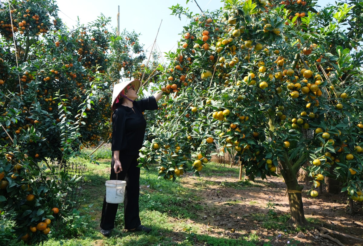 Chị Đào Minh Ngọc (Hà Nội) cùng đoàn cơ quan tới thăm vườn hôm 20/12 tỏ ra rất ngạc nhiên. "Tôi vô cùng ấn tượng. Chưa bao giờ tôi được tận mắt chứng kiến một vườn cam sai quả tới vậy", chị chia sẻ.
