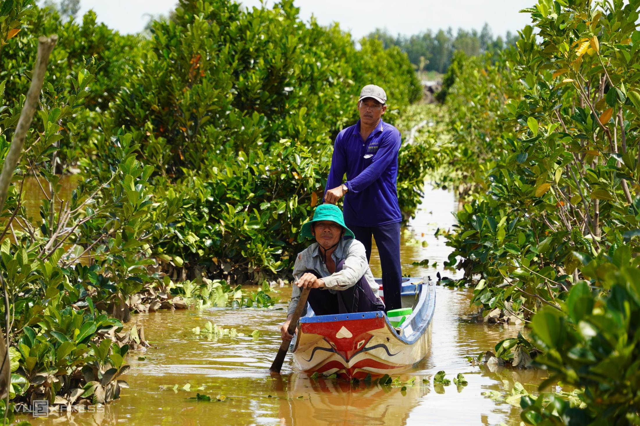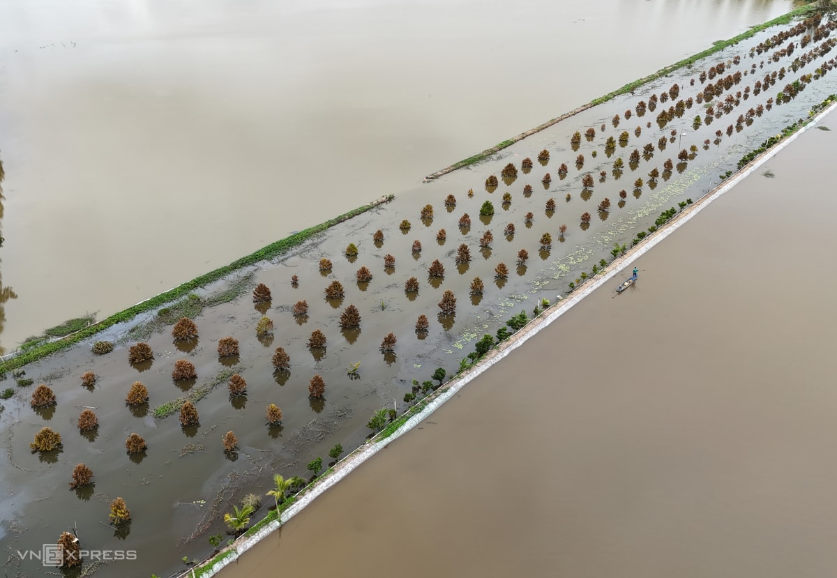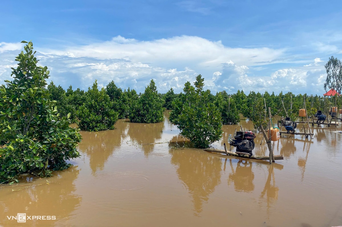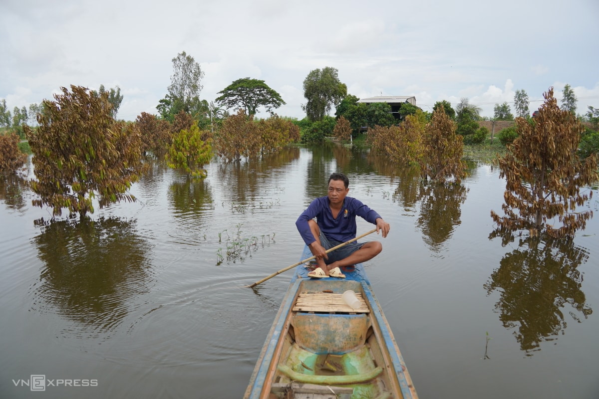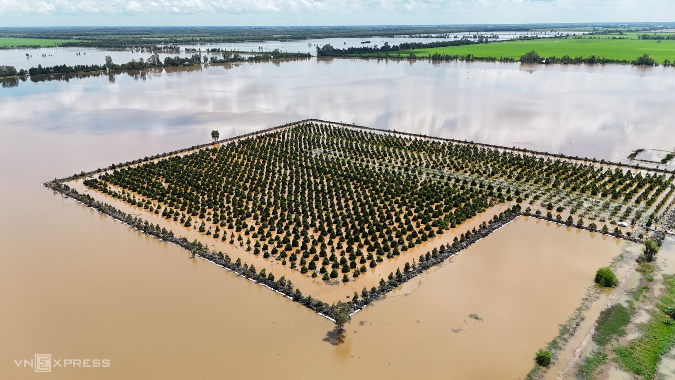 Vườn mít, sầu riêng chìm trong lũ ở Đồng Tháp Mười