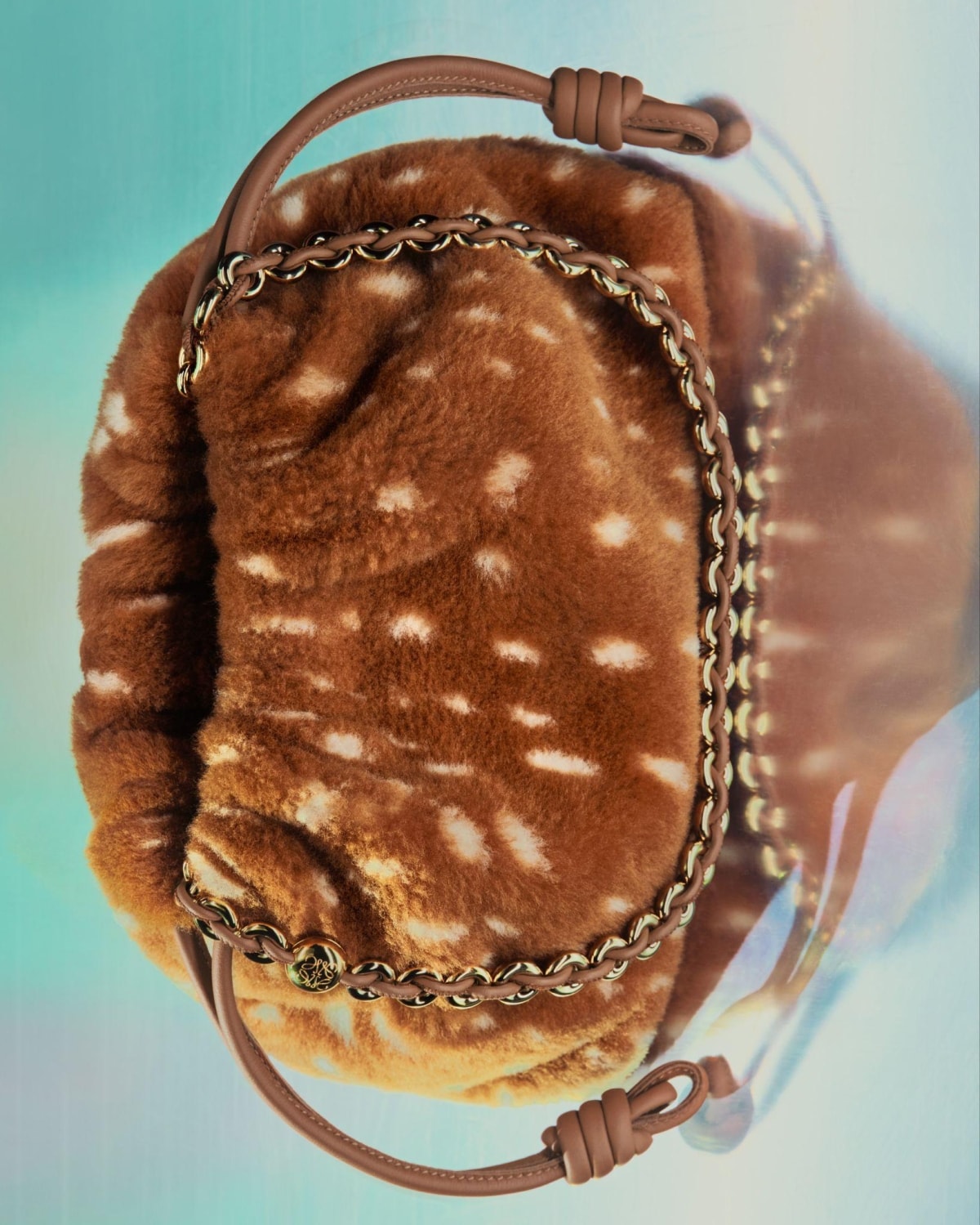 Trên chiếc Flamenco Purse, chất liệu da chuyển màu mạnh mẽ gợi nhắc về lớp da bóng bẩy trên những chiếc yên cương ngựa, khéo léo gợi nhắc về con giáp của năm.