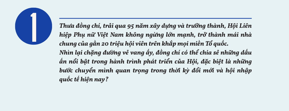 95 năm, một chặng đường lịch sử đầy tự hào, một hành trình của khát vọng và cống hiến. Từ truyền thống “Anh hùng - Bất khuất - Trung hậu - Đảm đang” đến hình ảnh người phụ nữ “Tự tin - Tự trọng - Trung hậu - Đảm đang” hôm nay, Hội LHPN Việt Nam đang tiếp tục viết tiếp trang sử mới, trang sử của niềm tin, trí tuệ và khát vọng vươn lên của phụ nữ Việt Nam trong kỷ nguyên số, hội nhập toàn cầu.