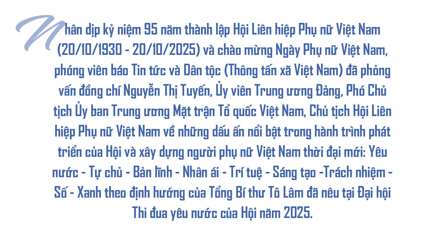 Nhân dịp kỷ niệm 95 năm thành lập Hội LHPN Việt Nam và chào mừng Ngày Phụ nữ Việt Nam, phóng viên báo Tin tức và Dân tộc, Thông tấn xã Việt Nam đã phỏng vấn Chủ tịch Hội Liên hiệp Phụ nữ Việt Nam Nguyễn Thị Tuyến.
