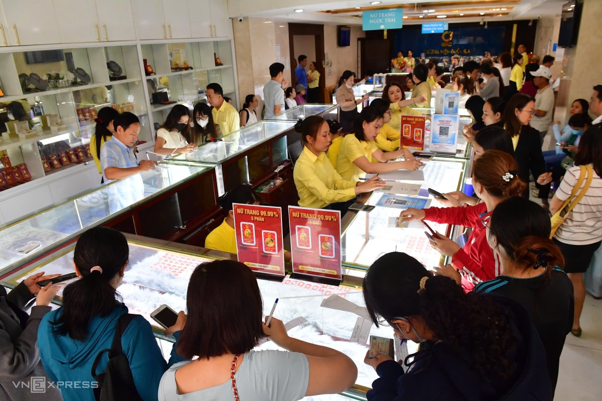 Xếp hàng từ mờ sáng mua vàng, bạc ngày Thần Tài