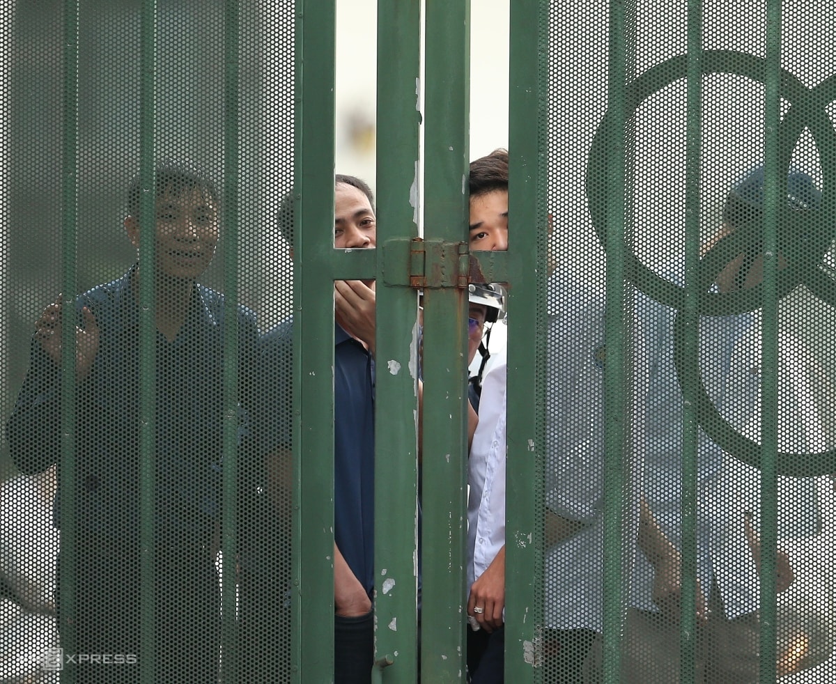 Những người hâm mộ ở Nam Định đứng theo dõi đội tuyển tập qua khe hở cổng sắt sân Thiên Trường. Sân đấu với sức chứa khoảng 20.000 chỗ ngồi dự kiến được lấp kín khán giả, để tiếp lửa cho thầy trò HLV Kim Sang-sik. Đến lúc này, vé mệnh giá 300.000 đồng đã được bán hết, và còn một lượng nhỏ hai loại 200.000 và 400.000 đồng.