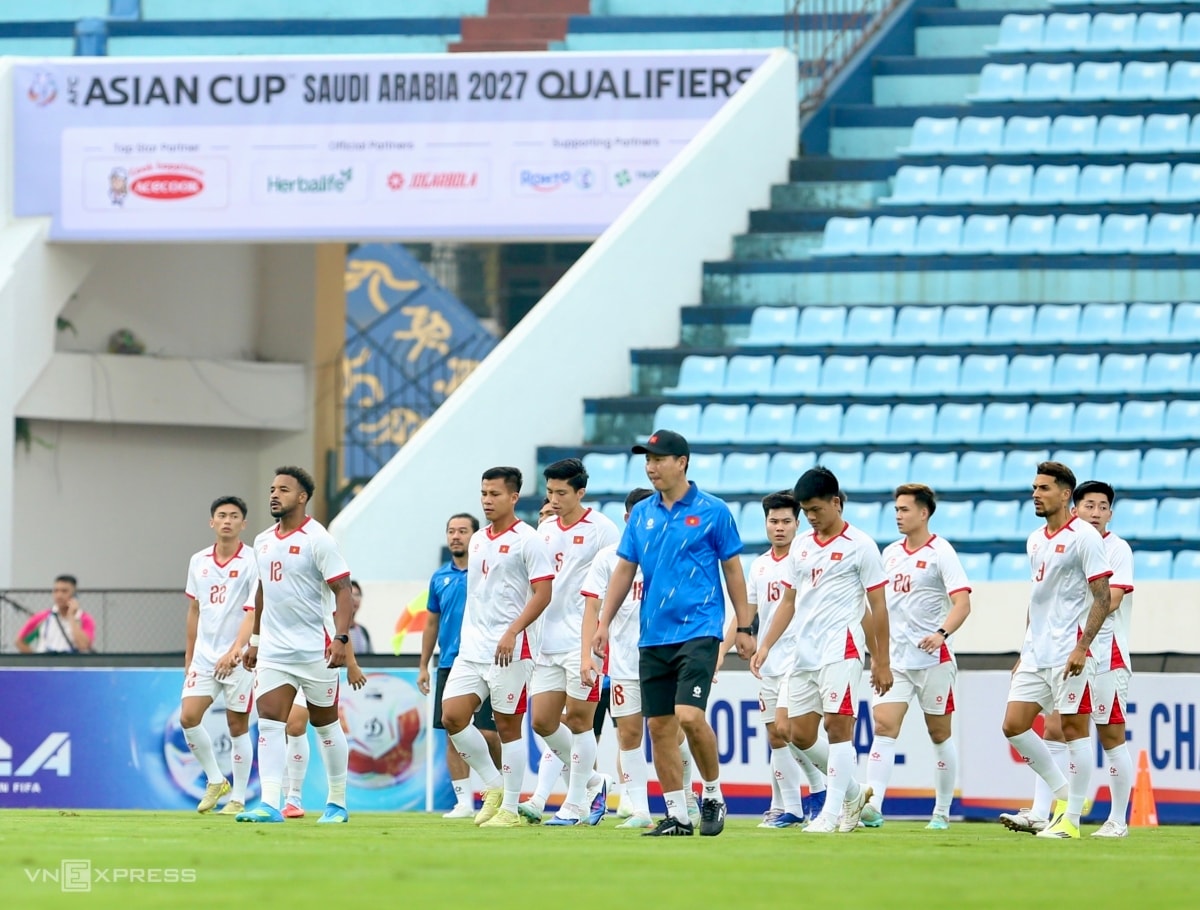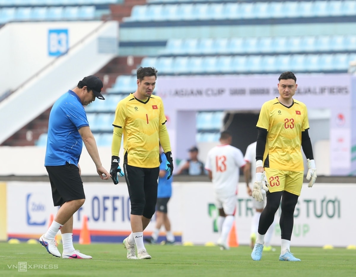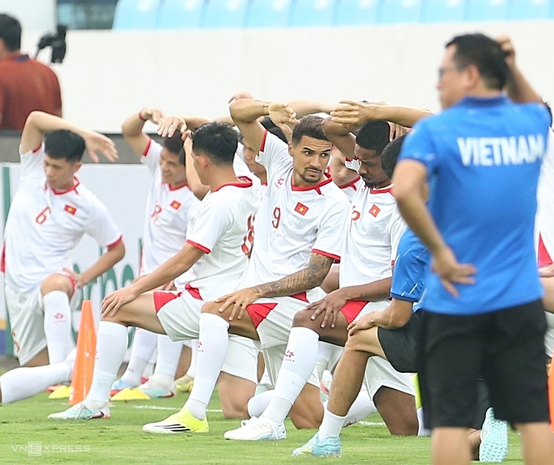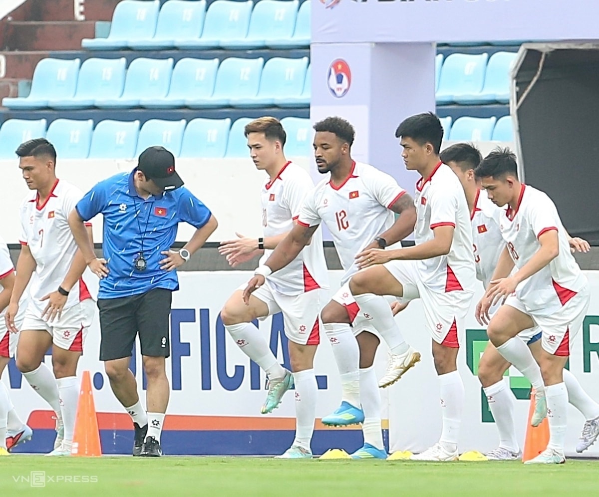Khuất Văn Khang là trường hợp duy nhất gặp vấn đề thể trạng và phải tập riêng chiều nay. Tiền vệ sinh năm 2003 bị nhiều người hâm mộ chỉ trích trên mạng xã hội sau những pha xử lý thiếu chính xác ở hiệp hai trận thắng Bangladesh.