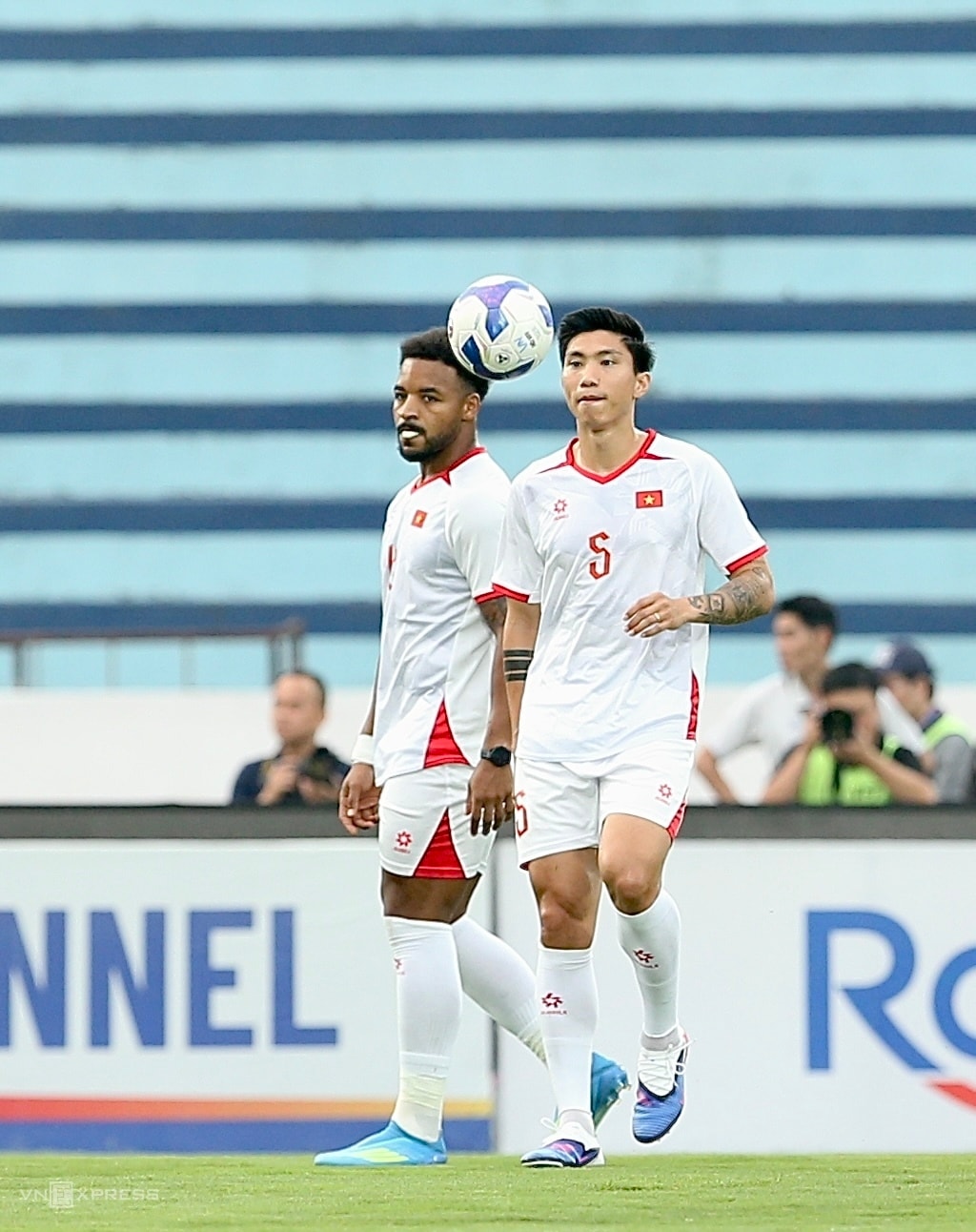 So với trận lượt đi thua Malaysia 0-4 tại sân Bukit Jalil vào tháng 6/2025, Việt Nam có thêm bốn gương mặt đáng chú ý, gồm Xuân Son, Hoàng Hên, Đoàn Văn Hậu (bên phải trong ảnh) và Trần Đình Trọng. Văn Hậu cũng vừa có 45 phút thi đấu trong hiệp hai trận thắng Bangladesh, kể từ lần gần nhất thi đấu cho đội tuyển vào tháng 6/2023.