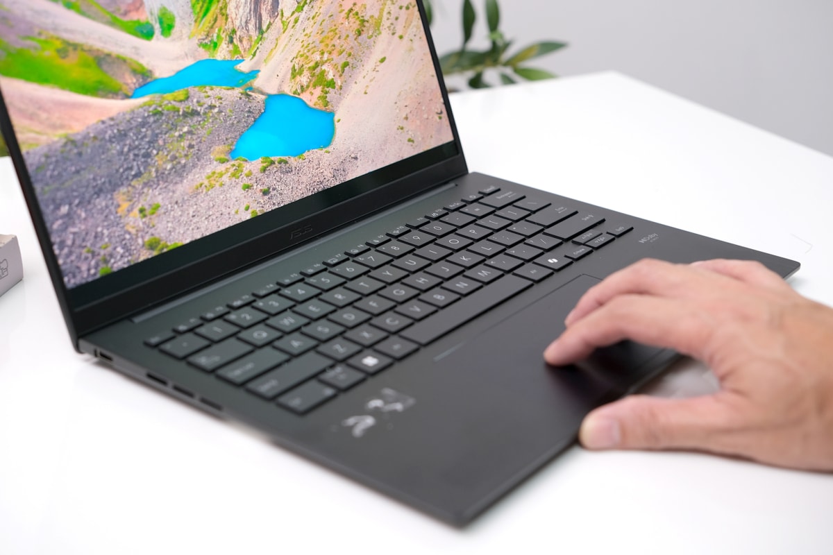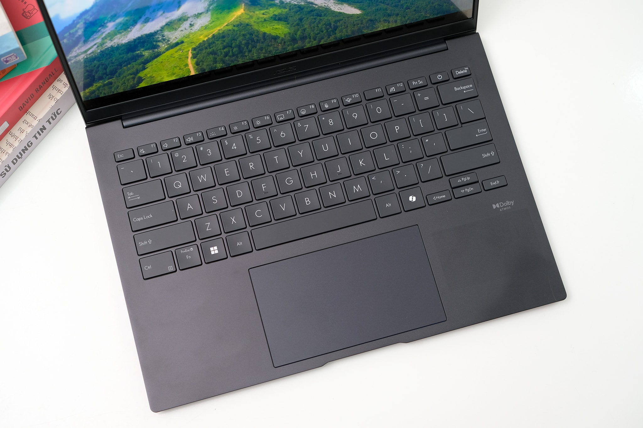Là mẫu laptop mỏng nhẹ nhưng trải nghiệm gõ phím và touchpad trên ZenBook 14 không bị "cắt gọt". Hành trình phím sâu, độ nảy rất tốt và nhạy nhưng thiếu cảm biến vân tay trên nút nguồn. Touchpad kích thước lớn, hỗ trợ đa chạm tốt kết hợp với các thao tác cử chỉ điều khiển linh hoạt trên hệ điều hành Windows 11.