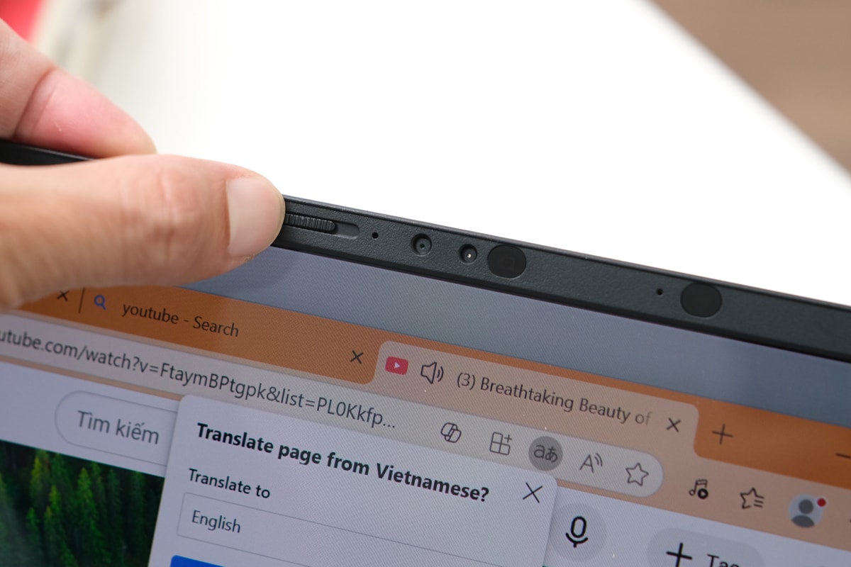 Camera độ phân giải Full HD ở mặt trước, hỗ trợ hồng ngoại cho tính năng nhận diện khuôn mặt Windows Hello. Không phải dòng máy chuyên dụng cho doanh nhân nhưng ZenBook 14 vẫn có hệ thống gạt vật lý để che webcam, phòng trường hợp máy bị hack, mất an toàn thông tin cá nhân.